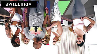 ADULT TIME - Hung Yoga Instructor Enjoys WILD REVERSE GANGBANG With 5 Crazy MILFs & Another Schoolgirl!