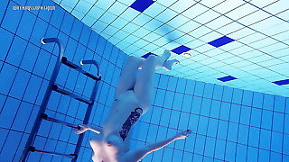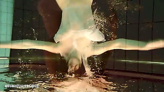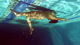 Blonde babe Okuneva shaved labia underwater swimming