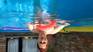 German thin amateur milf ravaged underwater in pool in Mallorca - POV