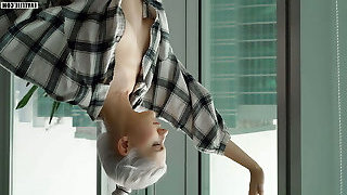 Hot housewife Lukerya is in the kitchen in her favorite tight white cut-offs flirting with aficionados and recording a vid.